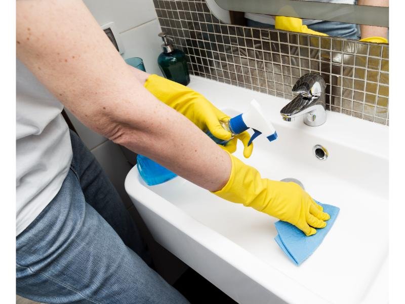 - Clean sinks, toilets, baths, taps, mirrors